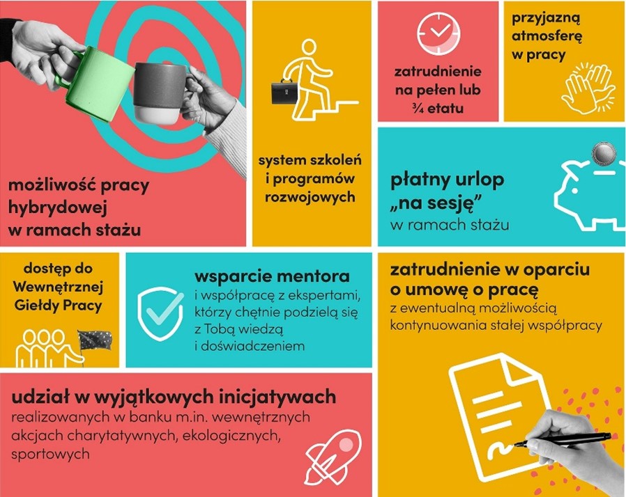 Finansów, Bankowości, Analizie Danych i Big Data, Zarządzania Ryzykami, Bankowości Korporacyjnej i Inwestycyjnej, Data Science, Nowych Technologii i Rozwoju Finansów w Oddziałach Bankowości Detalicznej, naszych Centrach Biznesowych MŚP i Korporacyjnych w całej Polsce oraz w IT rozwijając się na 4 ścieżkach: Tester, Programista, Analityk, Administrator.
